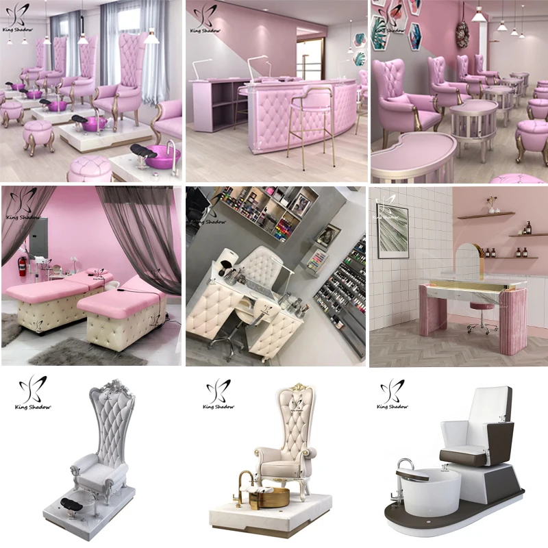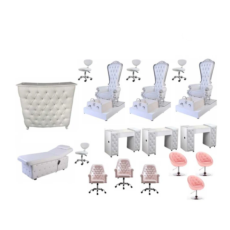Hot selling beauty salon furniture whole set portable nail table pink throne chairs no plumbing pedicure spa chair