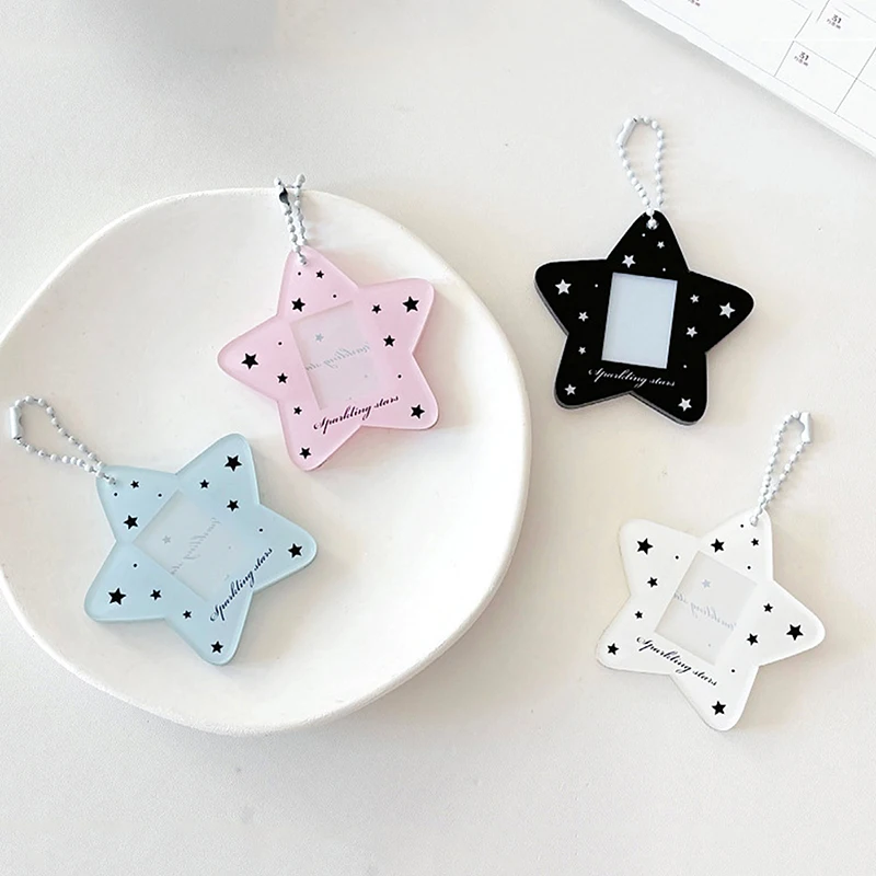 Ins Simple Star Acrylic 1 Inch Kpop Photocard Holder Bag Photo Card Sleeve Pendant School Stationery 1pc
