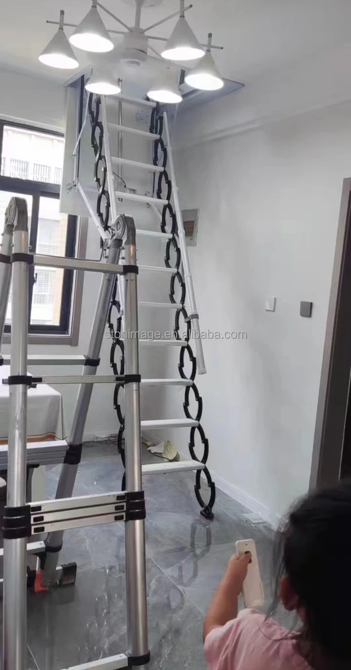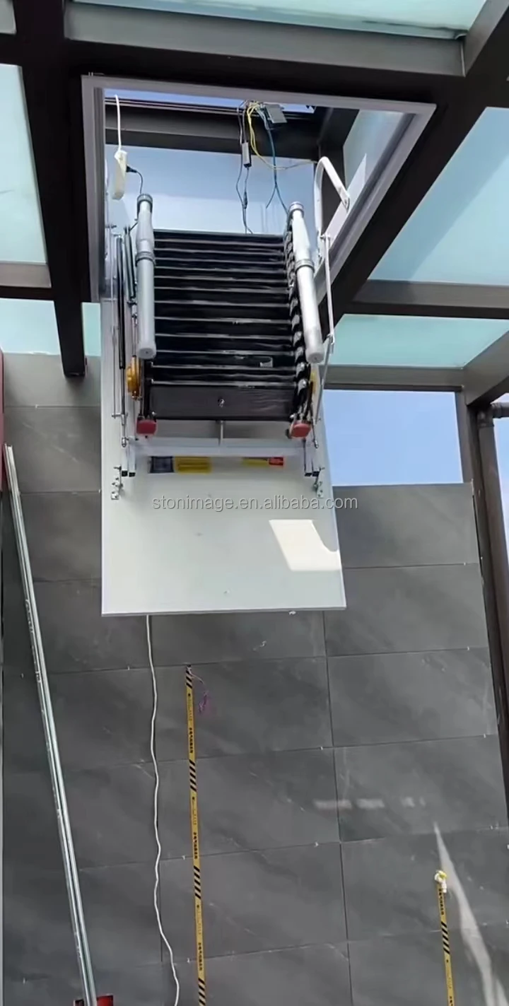 The electric retractable stairs in the attic is simple and generous, can be folded and contracted, does not occupy space, and can be retracted and released freely. It is the best choice of small attic. The electric retractable staircase in the attic can carry 500 kg weight, and its structure adopts steel link, so there will be no hidden danger.
