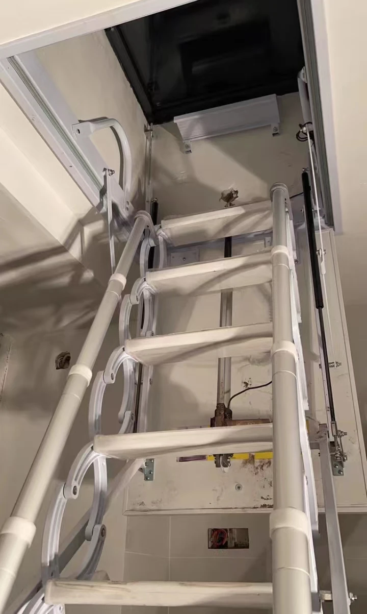 The electric retractable stairs in the attic is simple and generous, can be folded and contracted, does not occupy space, and can be retracted and released freely. It is the best choice of small attic. The electric retractable staircase in the attic can carry 500 kg weight, and its structure adopts steel link, so there will be no hidden danger.