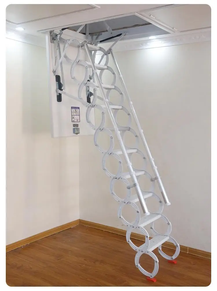 Loft Extension Scissor Ladder Attic Hidden Aluminum Alloy Telescopic Stairs Pull Down Single Step Ladder