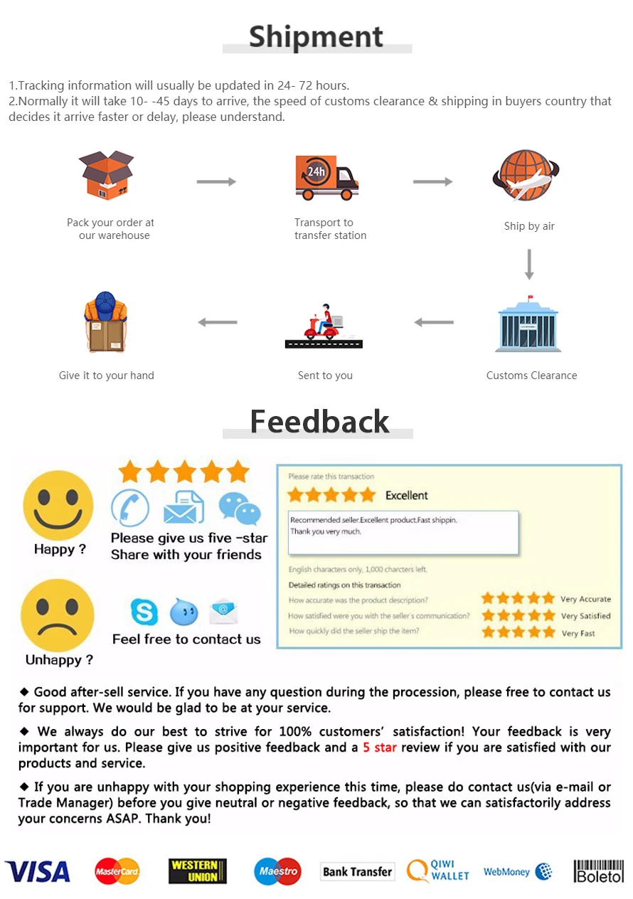 1, We usually ship within 24 hours after verification, (except weekends, except holidays). If you need to modify the address information, please give us a message.