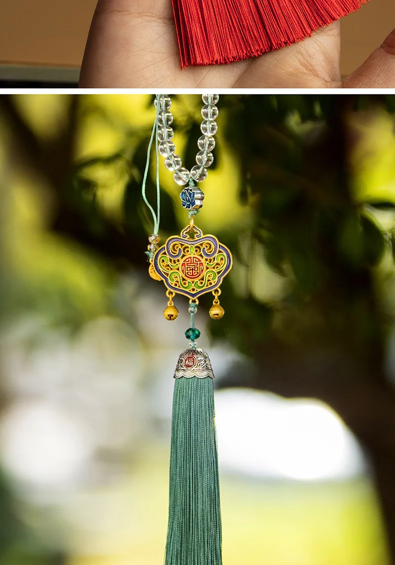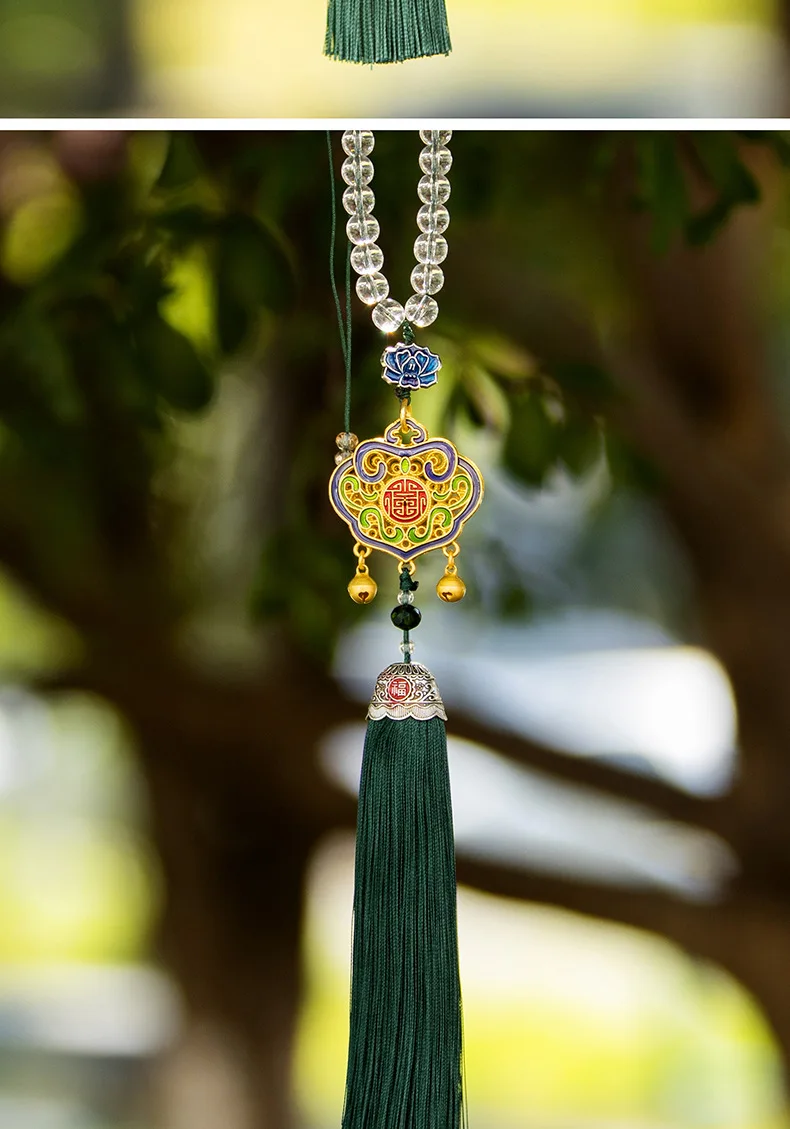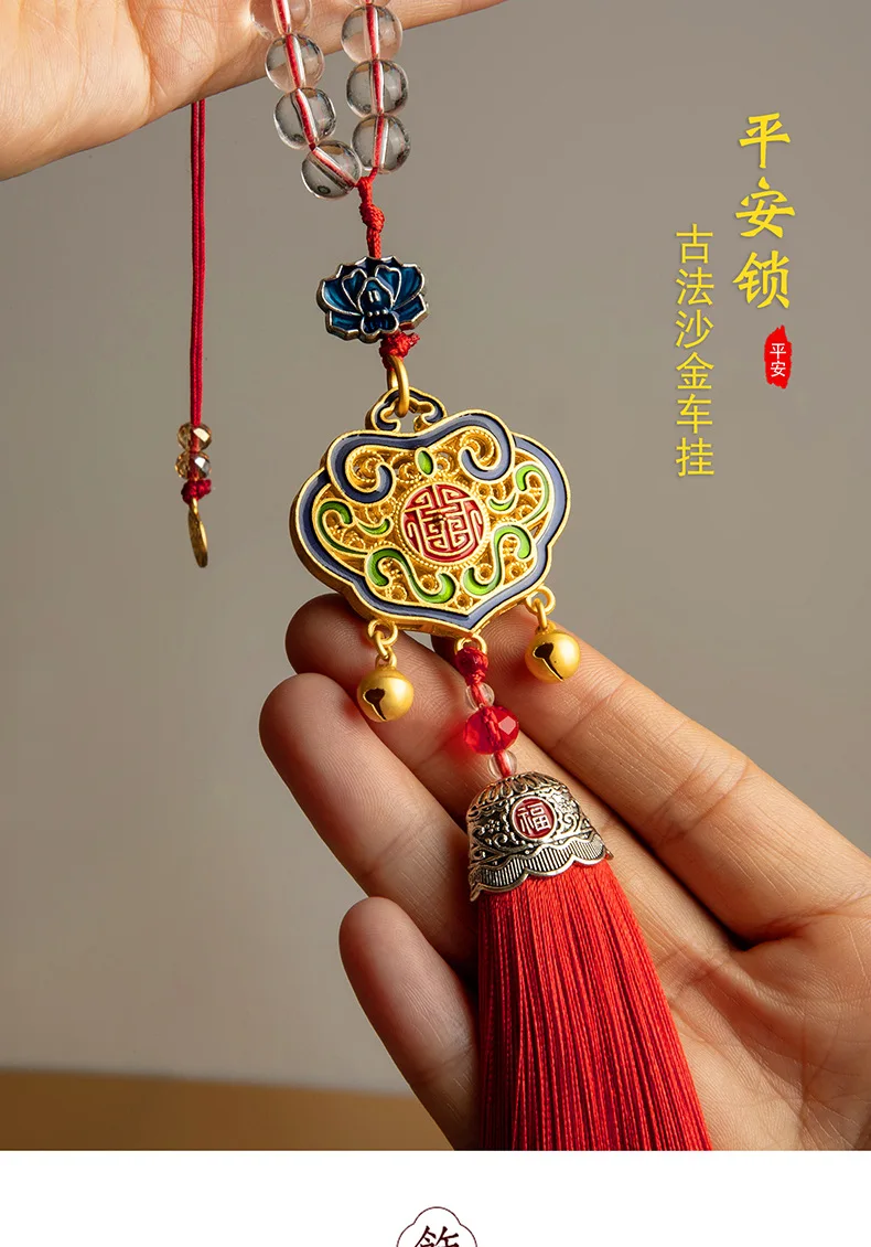New National Style Ruyi Safety Lock Automobile Hanging Ornament Hand-Knitted Enamel Car Rearview Mirror Creative Pendants Pendan