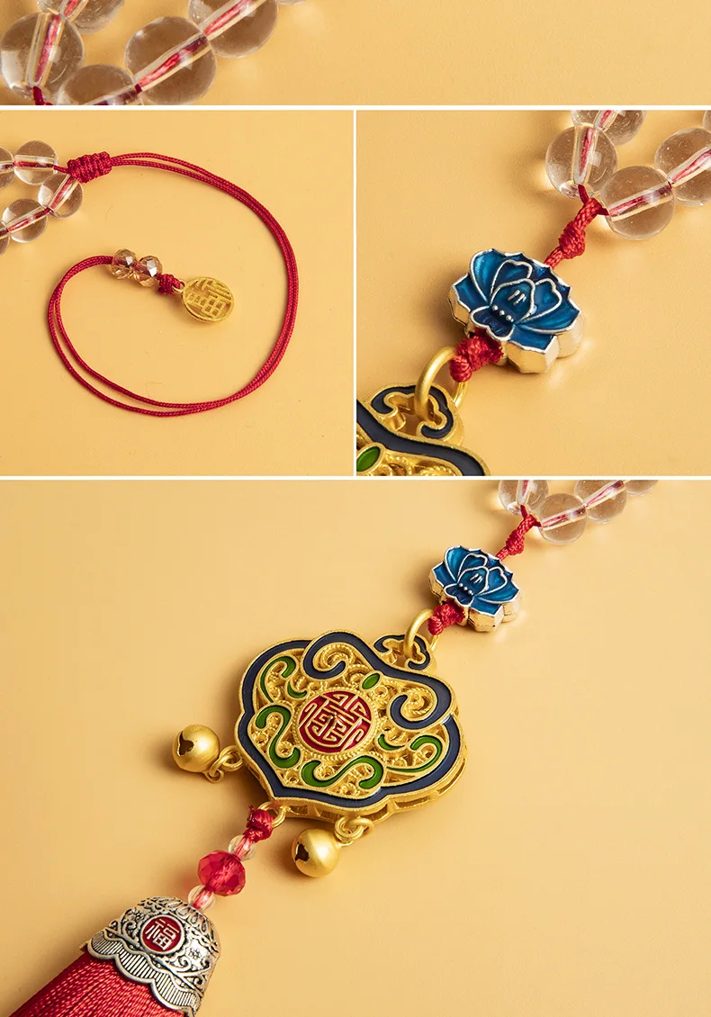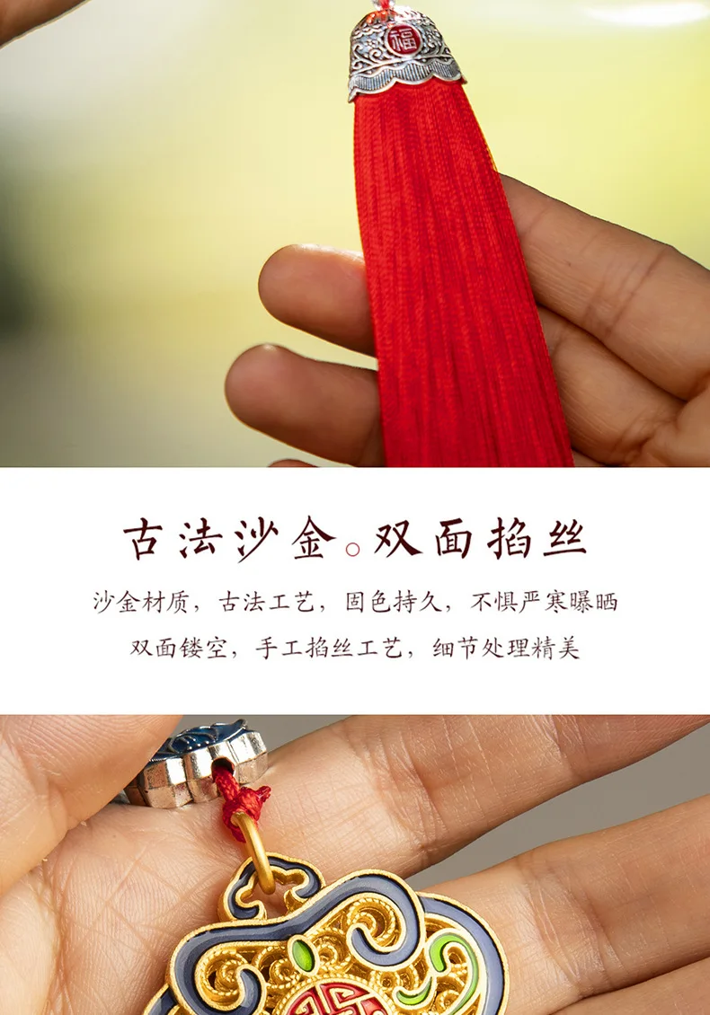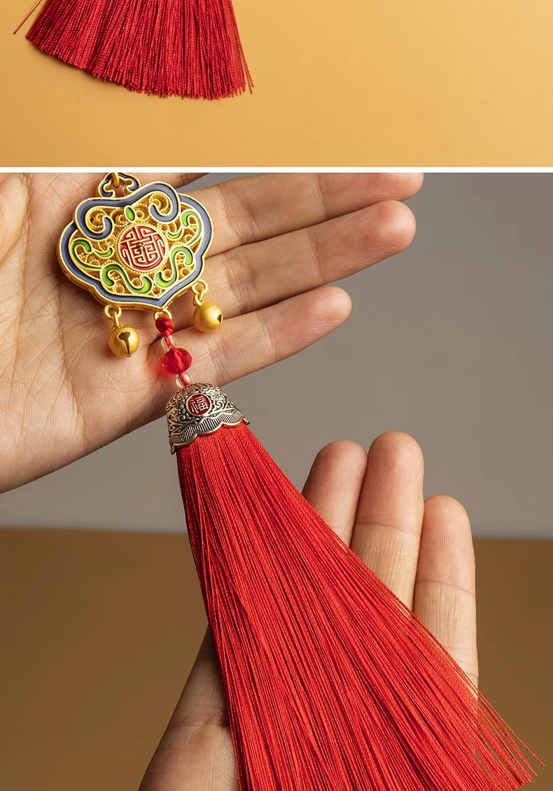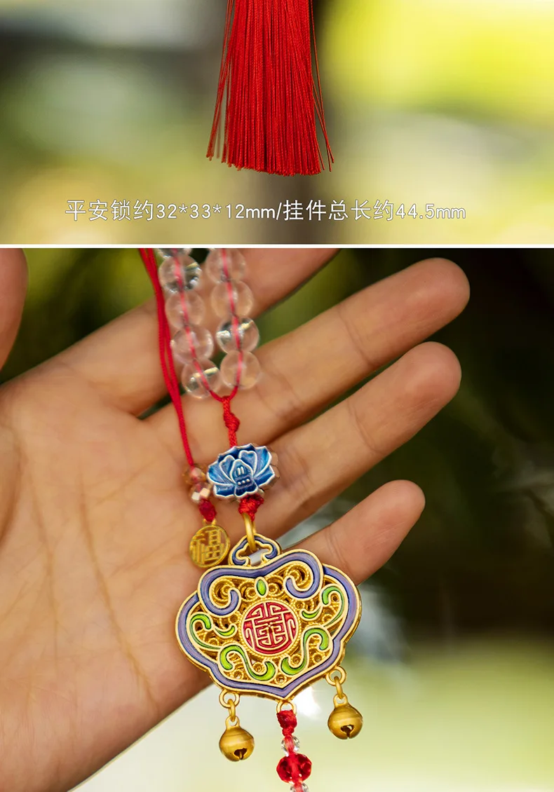 New National Style Ruyi Safety Lock Automobile Hanging Ornament Hand-Knitted Enamel Car Rearview Mirror Creative Pendants Pendan