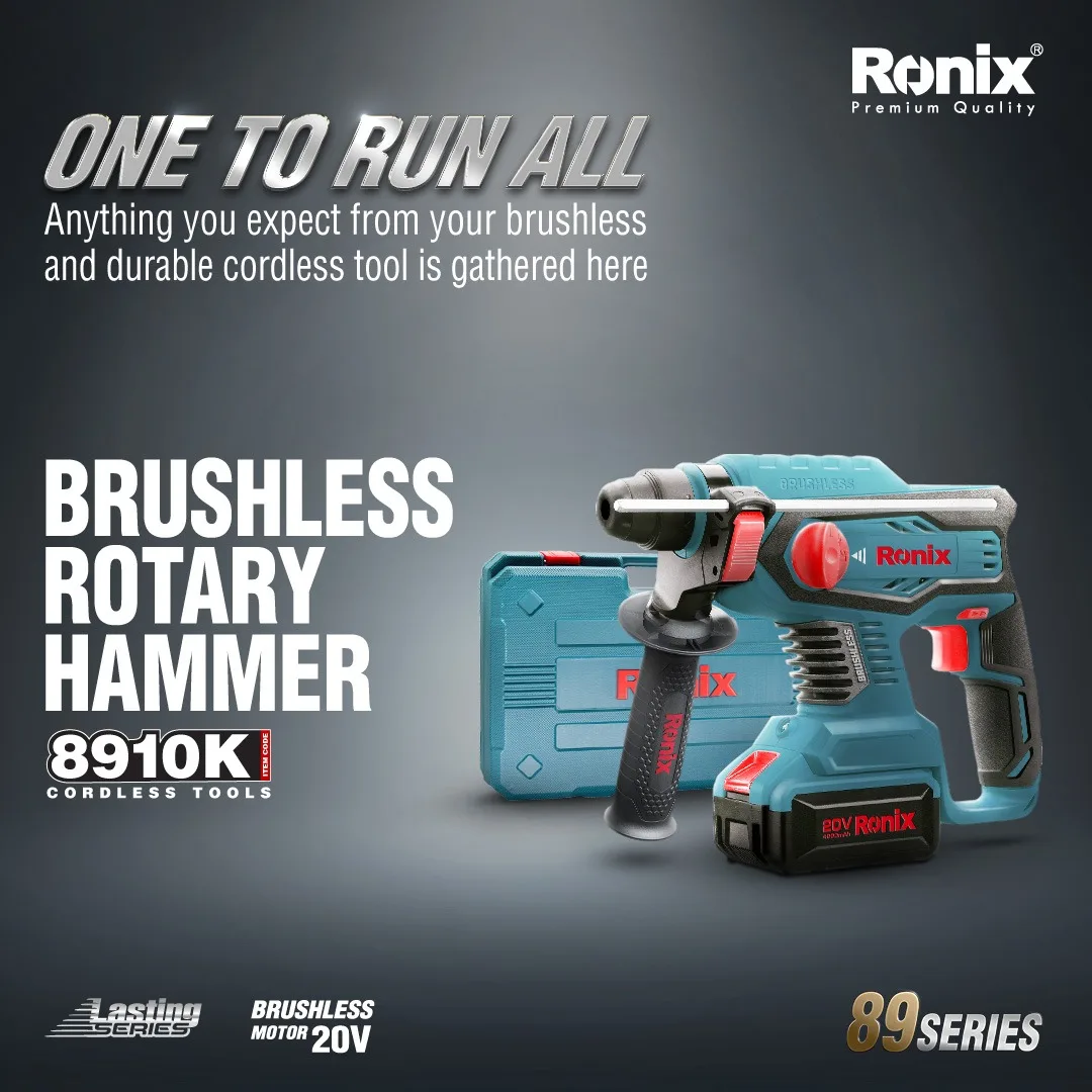 RONIX 8910k Power Tools 20V Cordless Hammer Drill Machine Electric Drill 26mm Rotary Hammer Drill Industrial Grade 900R/MIN