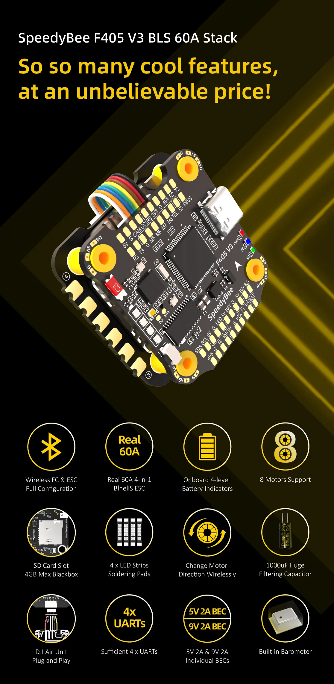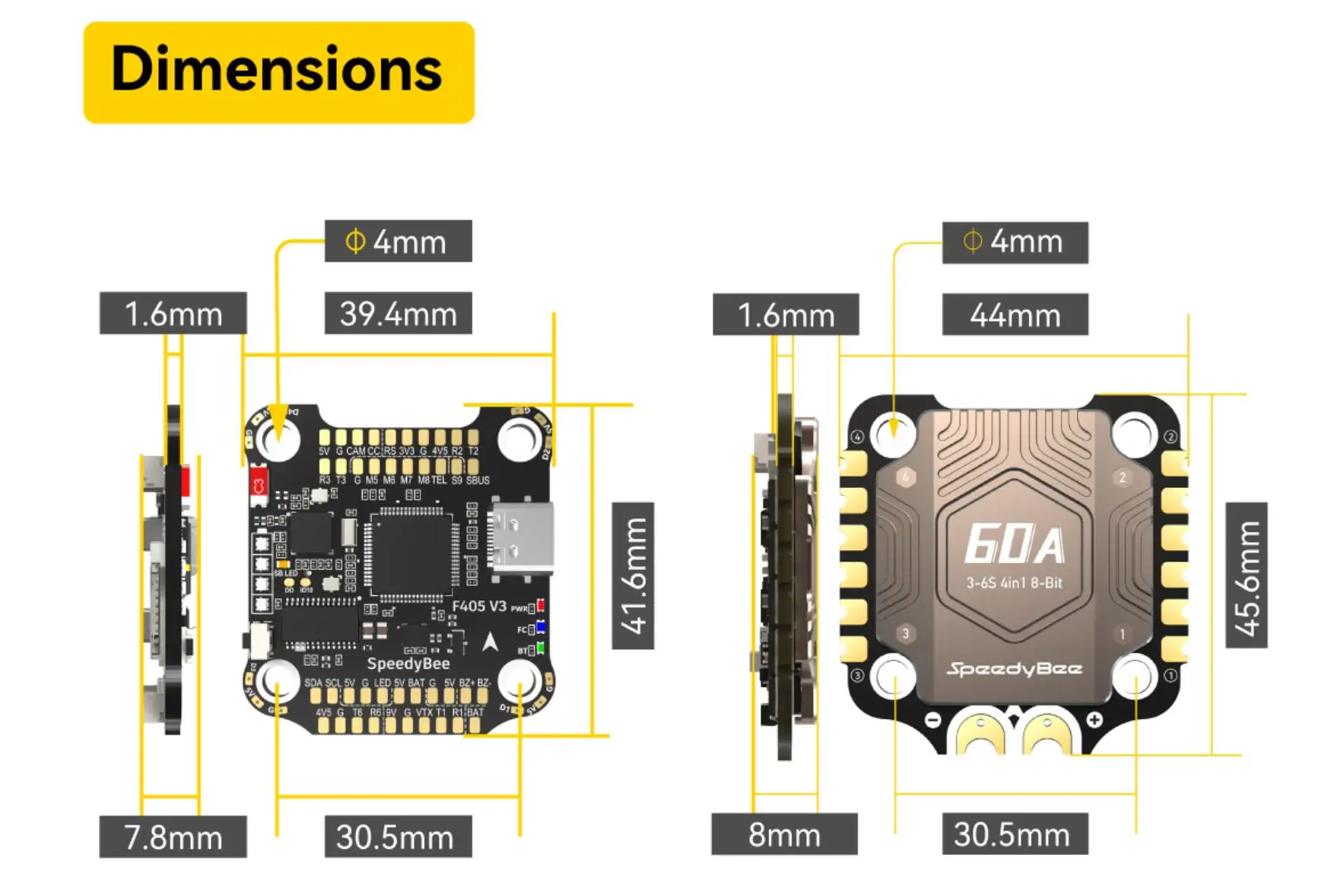 SpeedyBee F405 V3 30X30 FC&ESC FPV Stack BMI270 F405 Flight Controller BLHELIS 60A 4in1 ESC for FPV Freestyle Drone Model