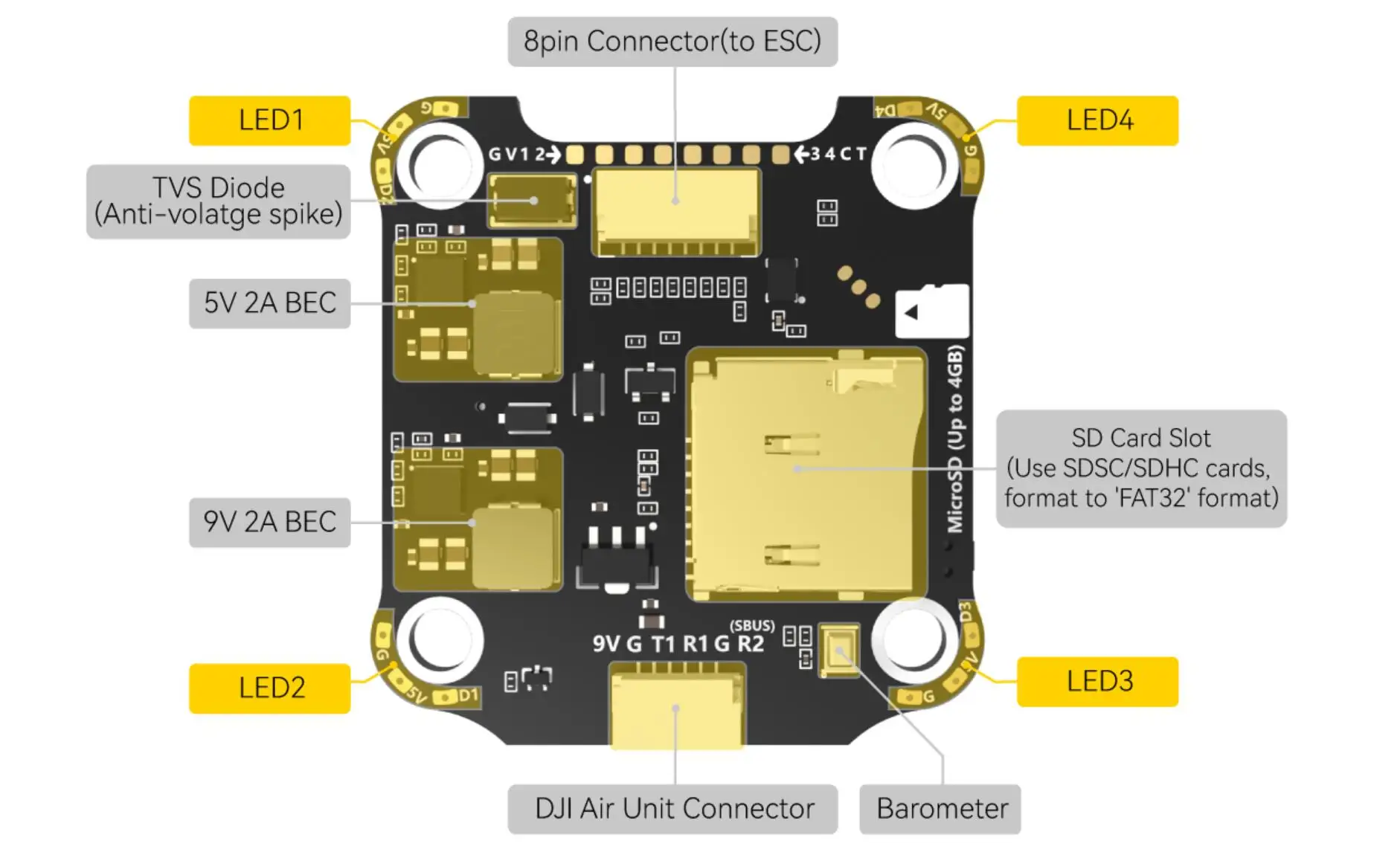 | Color | FC and ESC, Only F405 V3 FC, Only 60A ESC |
