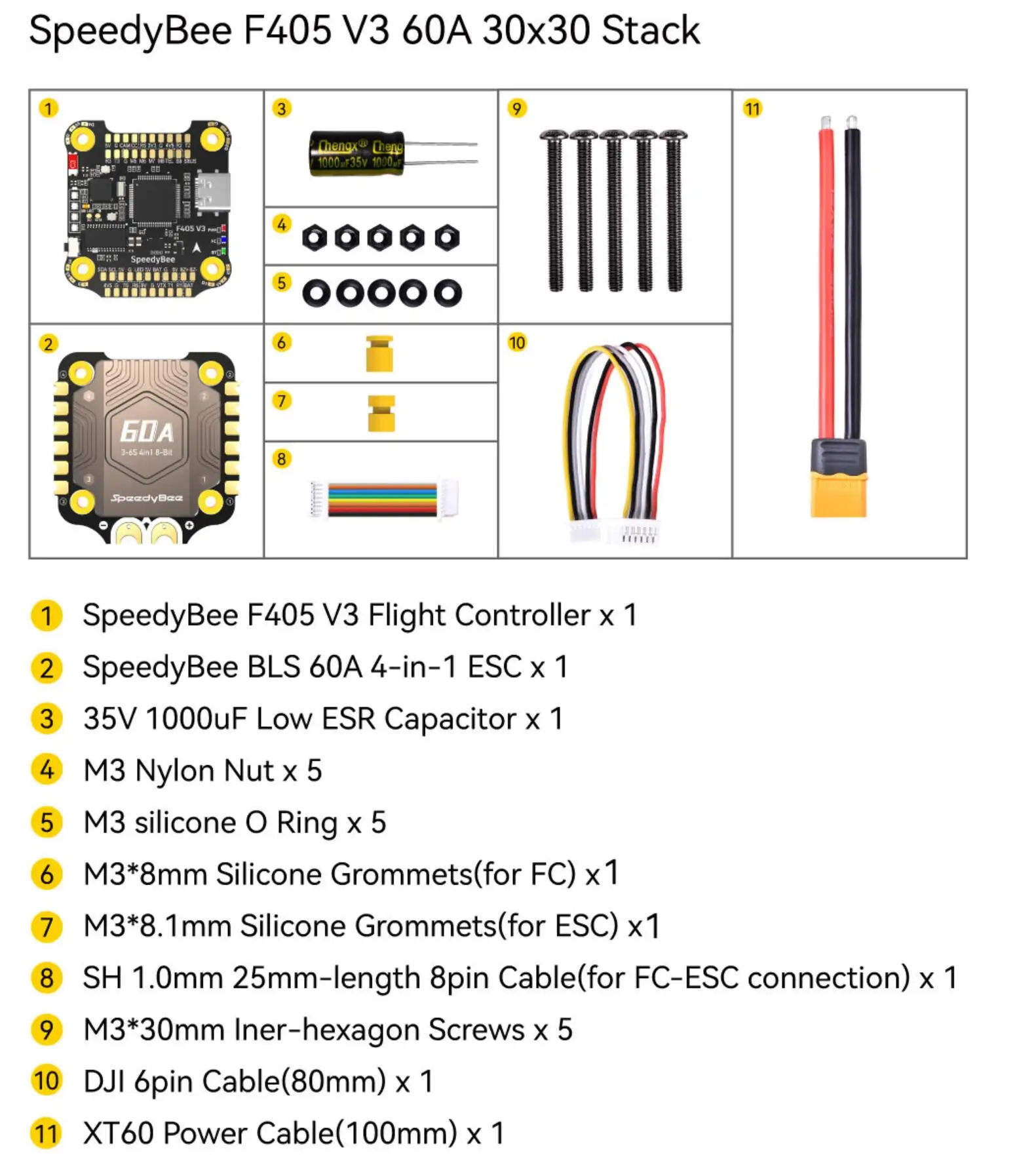 Newest SpeedyBee F405 V3 30X30 FC&ESC FPV Stack BMI270 F405 Flight Controller BLHELIS 60A 4in1 ESC for FPV Freestyle Drone Model