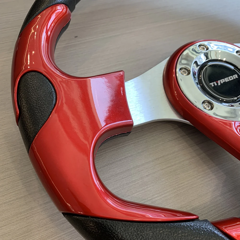 TIYPEOR Redesign Red Universal Flat Drift PU Racing Game Simulator Steering Wheel With compass