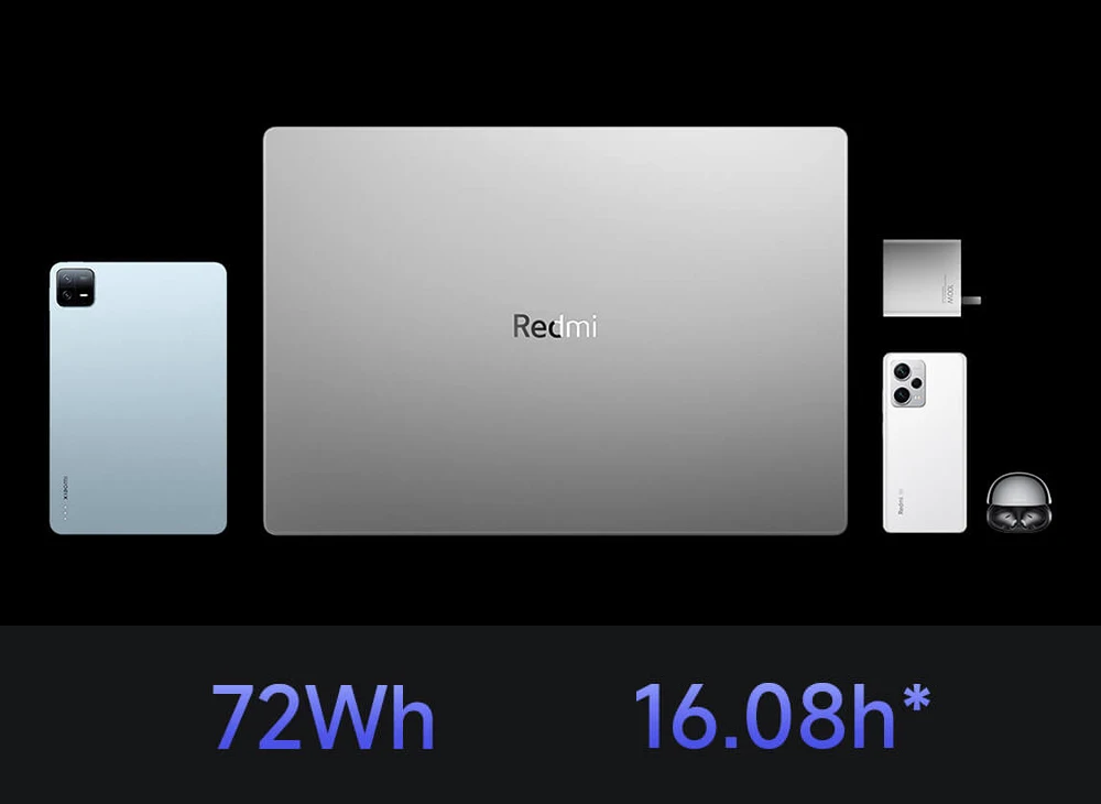 72Wh battery capacity, up to 16.08 hours of local 1080P video playback.