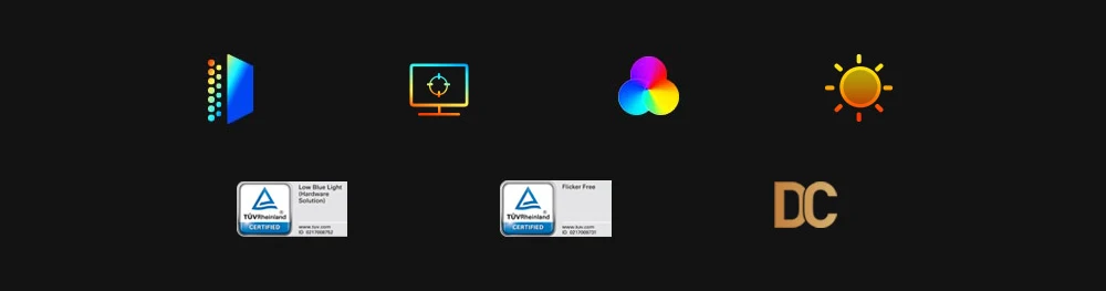 – Screen Technology : Full DC dimming, supports Dolby Vision, certified by TÜV Rheinland for hardware-level low blue light, and TÜV Rheinland for flicker-free