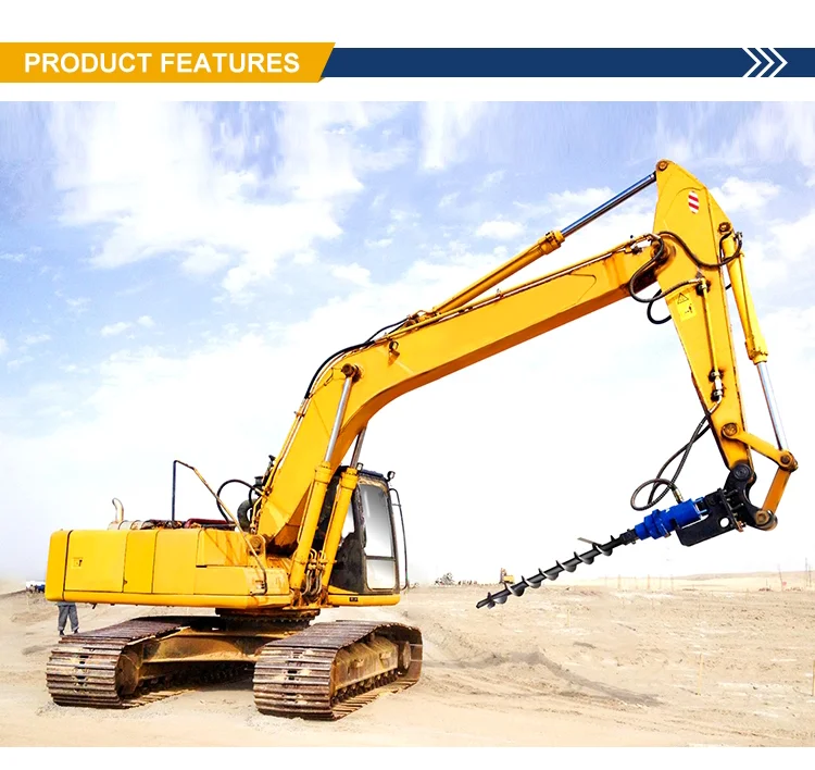 1.Strong drilling ability: can drilling under various geological conditions, including soil, rock, etc. 2.Efficient operation: improve the efficiency and speed of drilling with the power and flexibility of the excavator. 3.Adjustment: The length, diameter and angle of the auger can usually be adjusted according to the specific construction requirements. 4.Easy to install and remove: it can be quickly installed at the arm end of the excavator, and can be easily removed after use.