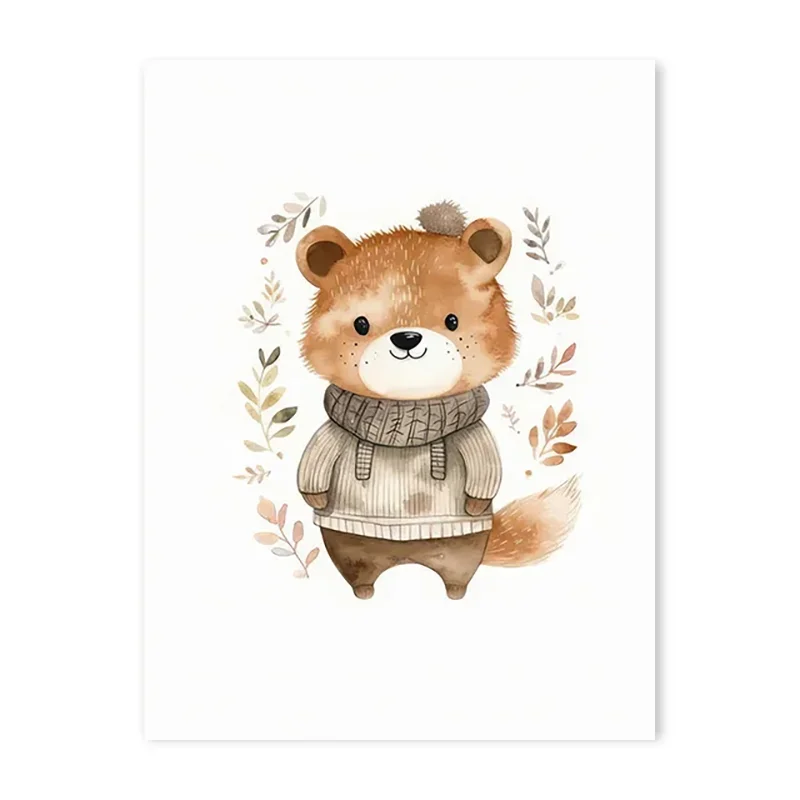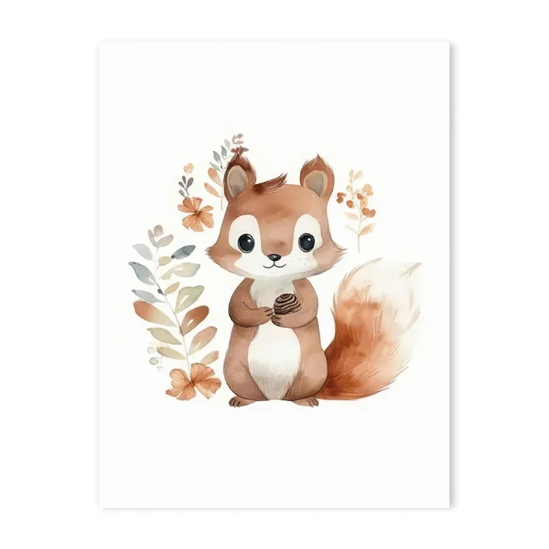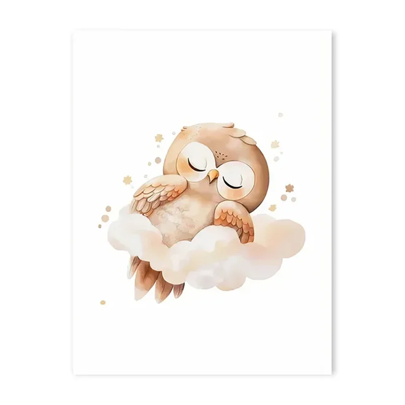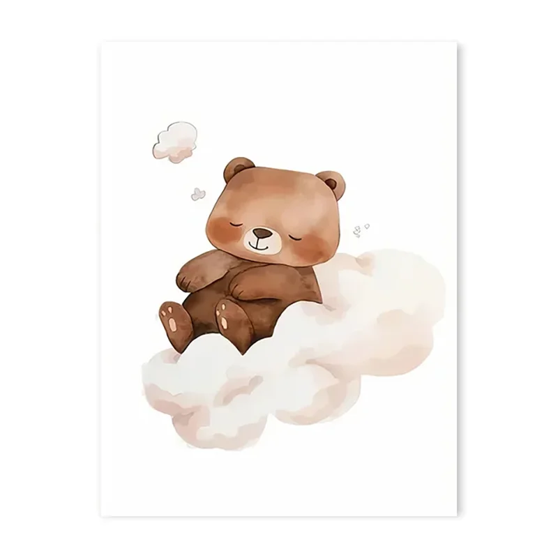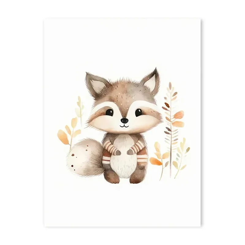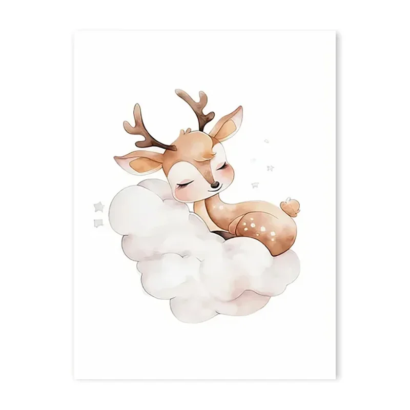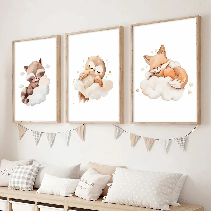 Cartoon Baby Cute Cloud Animal Canvas Painting Raccoon Fox Deer Kids Wall Art Poster Nursery Picture Baby Room Decor Mural