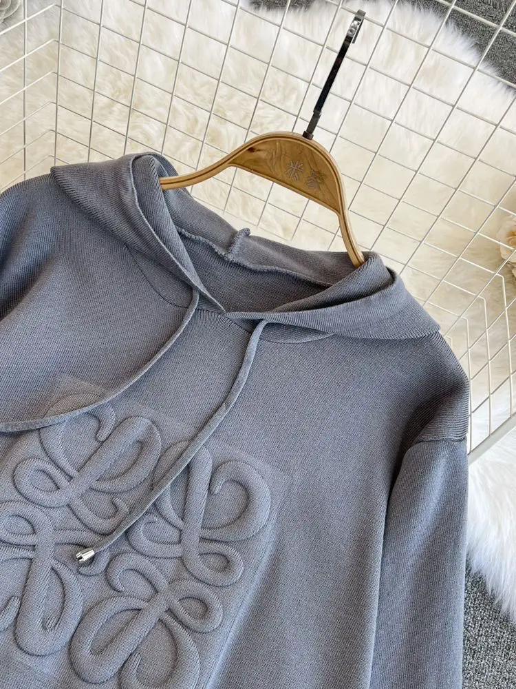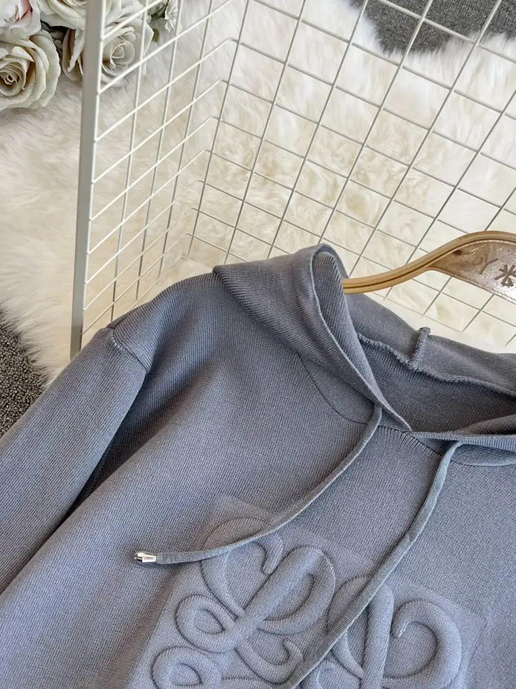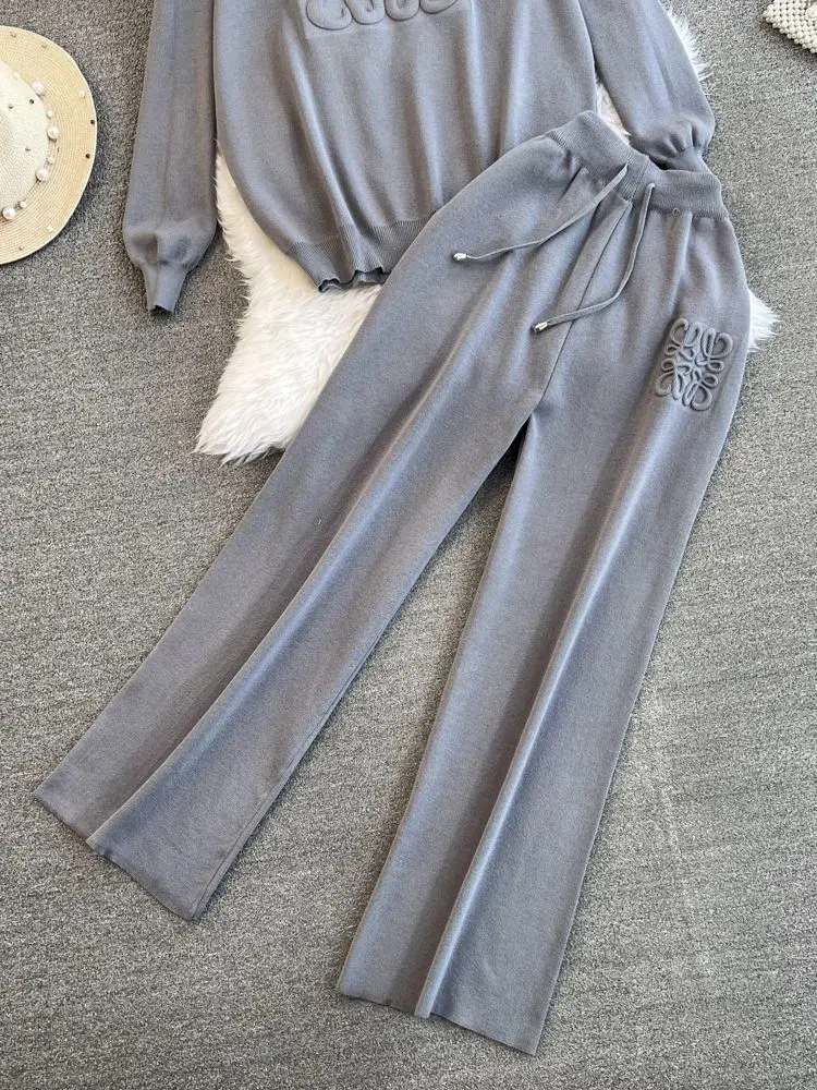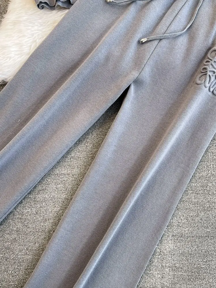 Fashion Suit Women’s Korean Version Loose Knit Hooded Top Casual High Waist Slimming Straight Leg Wide Leg Pants Two-piece Set