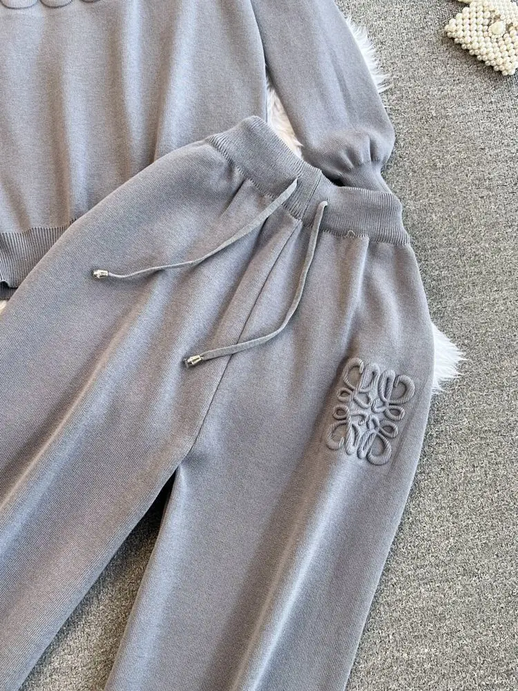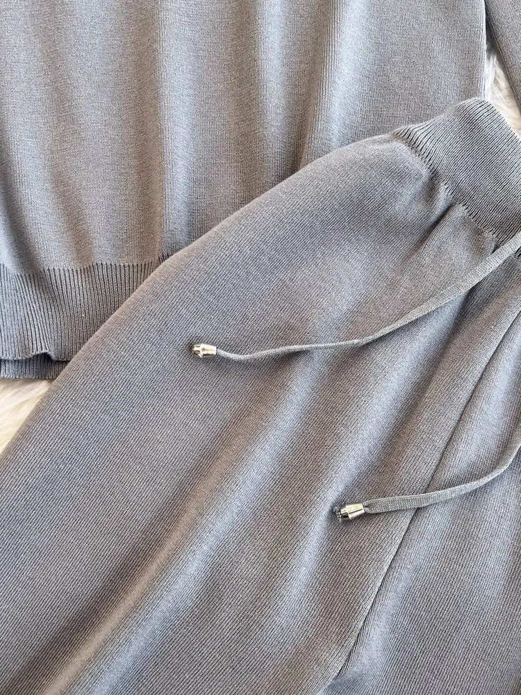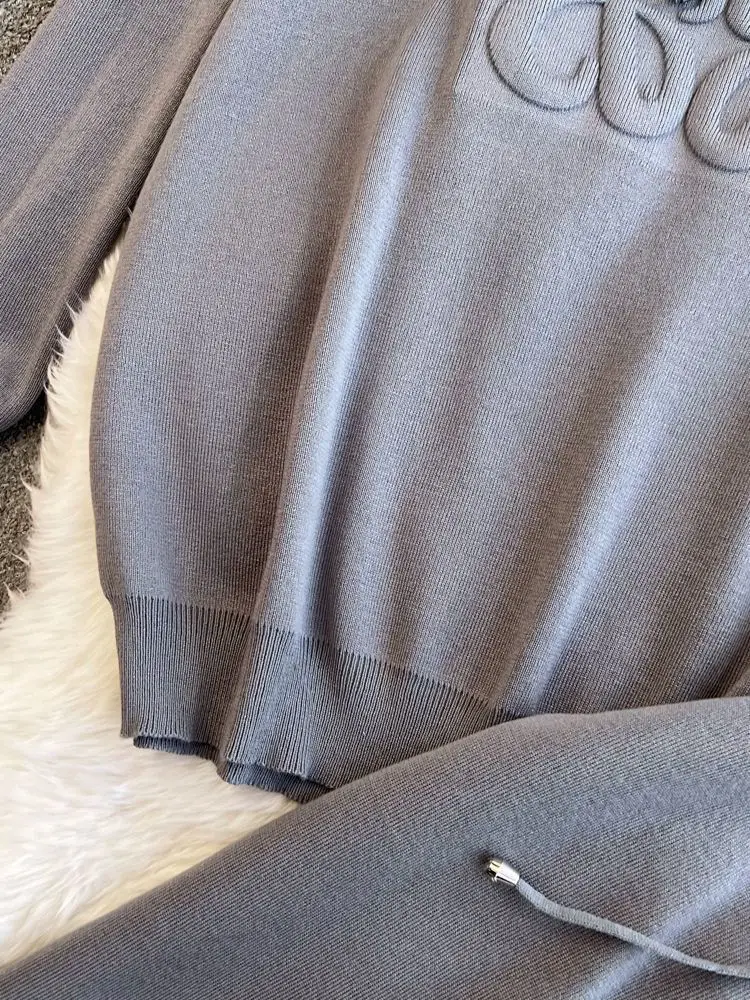 Be the first to review “Fashion Suit Women’s Korean Version Loose Knit Hooded Top Casual High Waist Slimming Straight Leg Wide Leg Pants Two-piece Set”