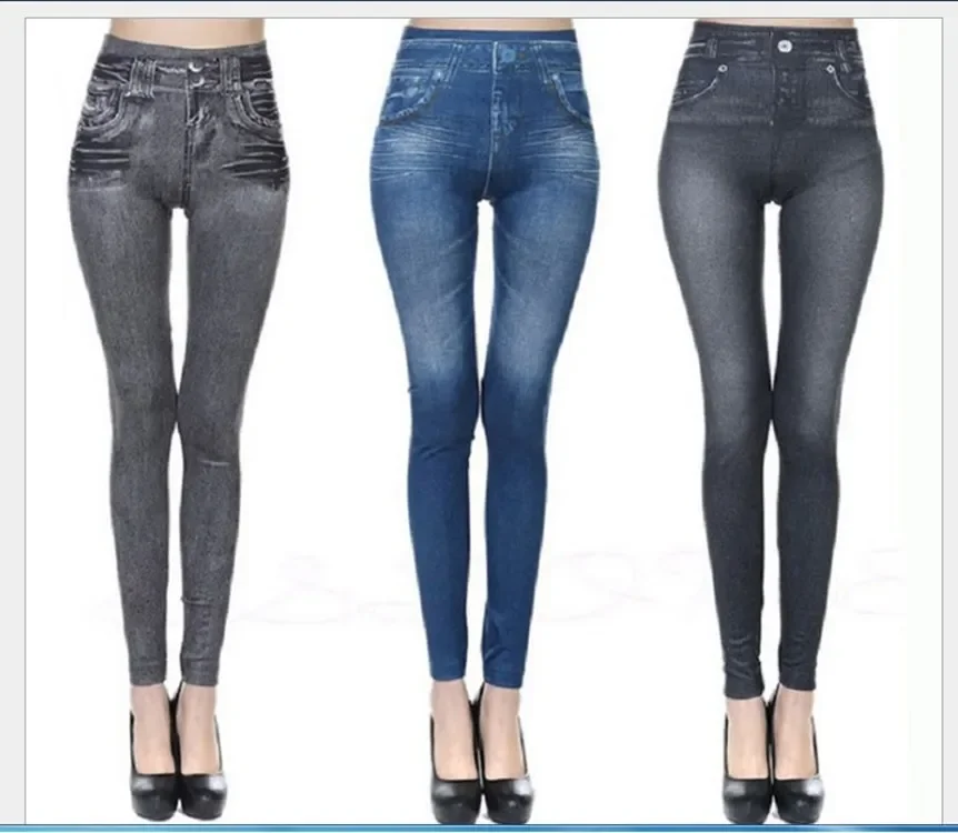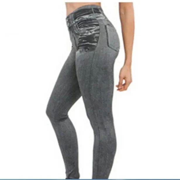 Leggings Women 2022 Fashion Faux Denim Jeans Leggings Sexy Long Pocket Printing Legging Summer Casual Pencil Black Pants Plus