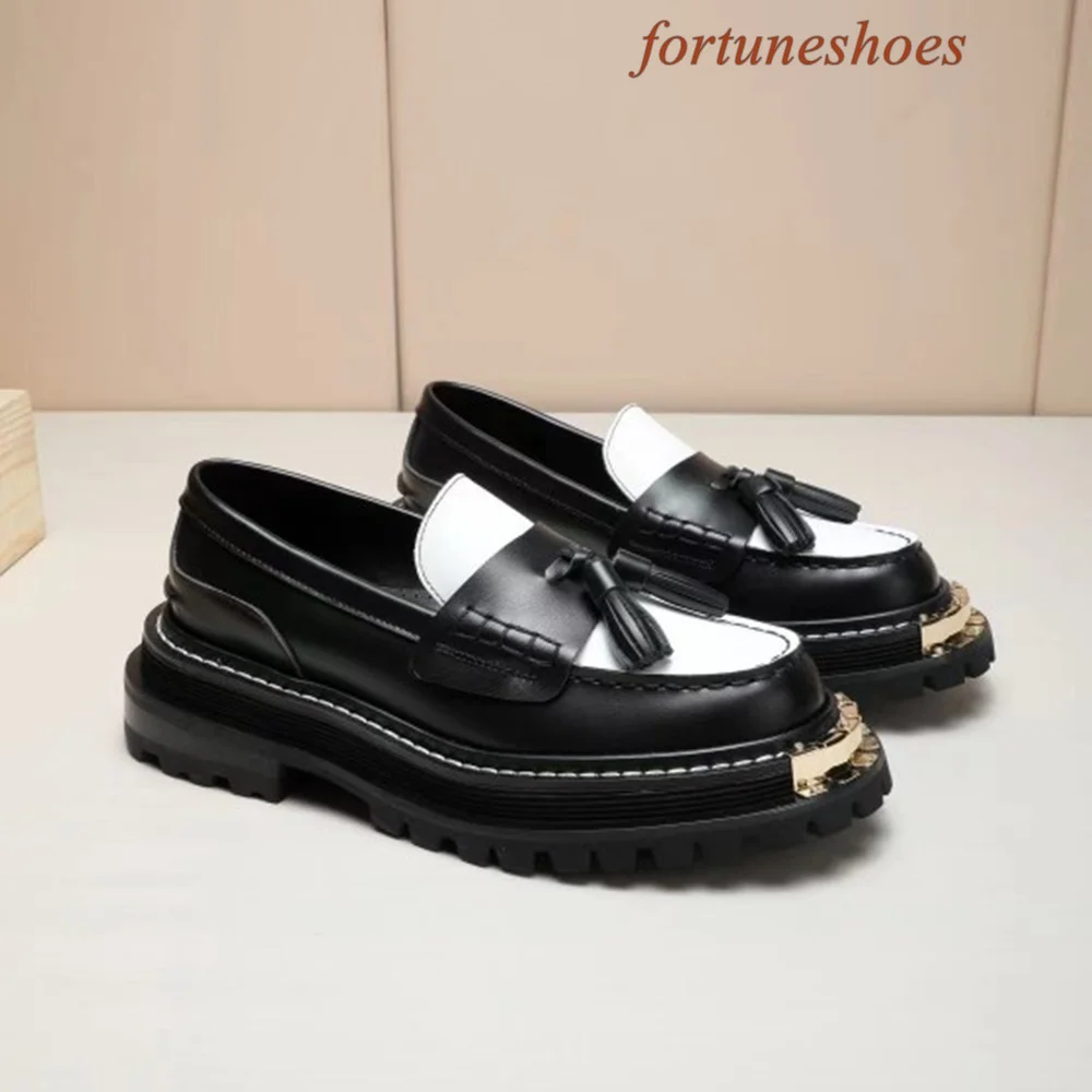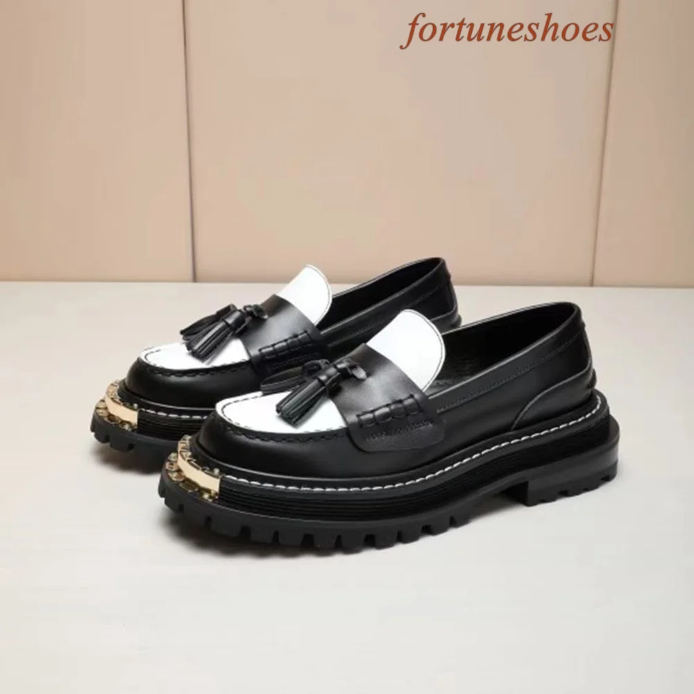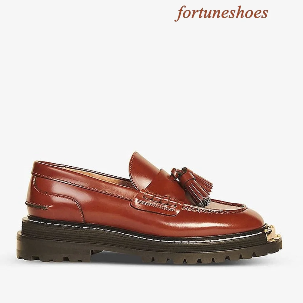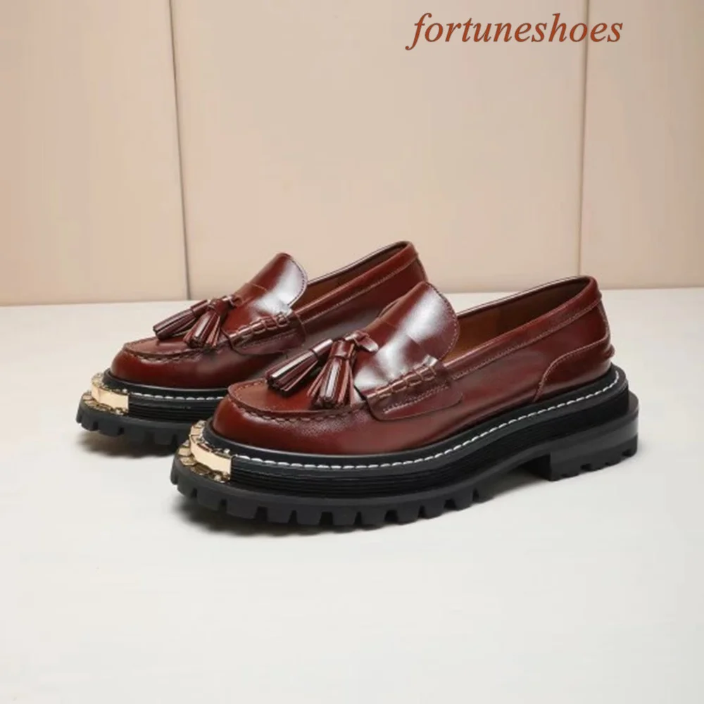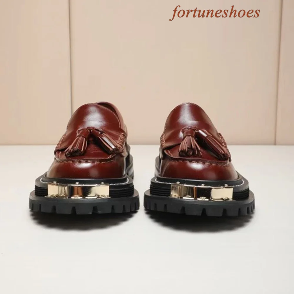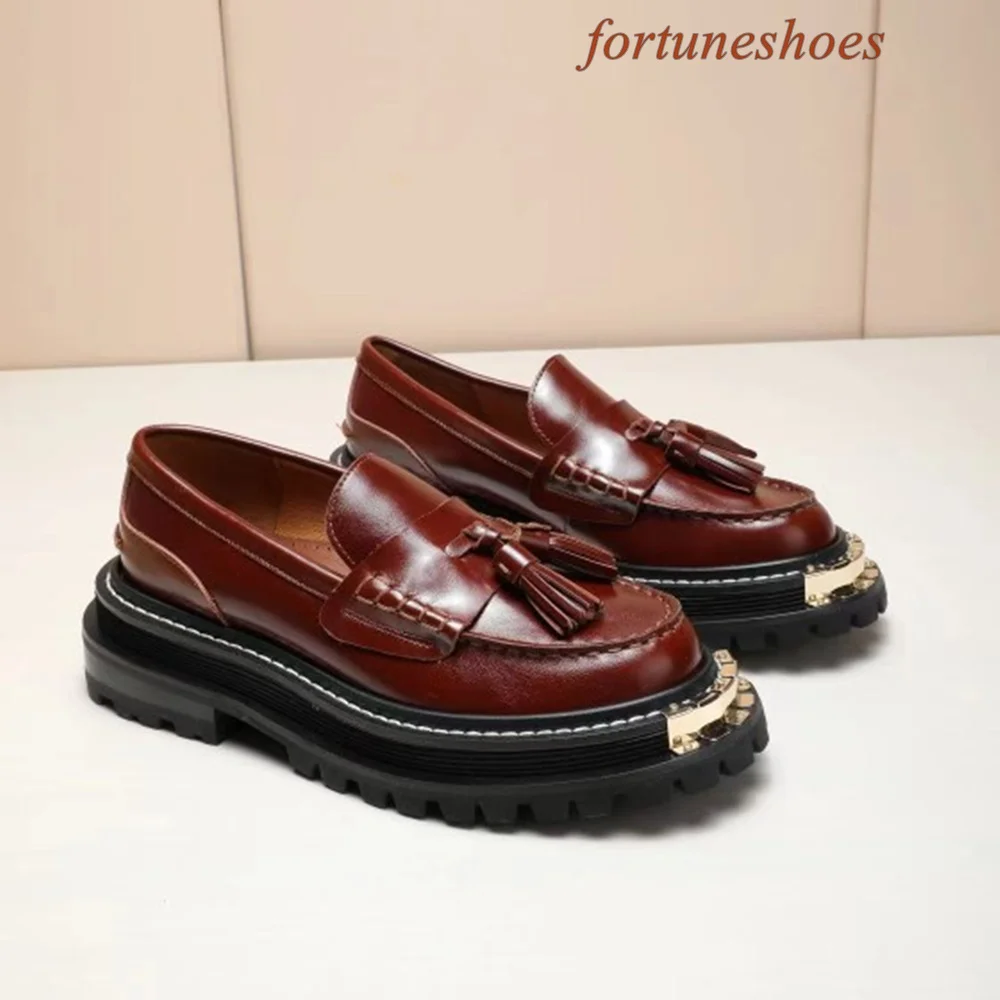 Metal Decoration Fringe Women Shoes Round Toe Slip On Sponge Cake Base Shoes Spring/autumn Fashion Casual Comfortable Shoes