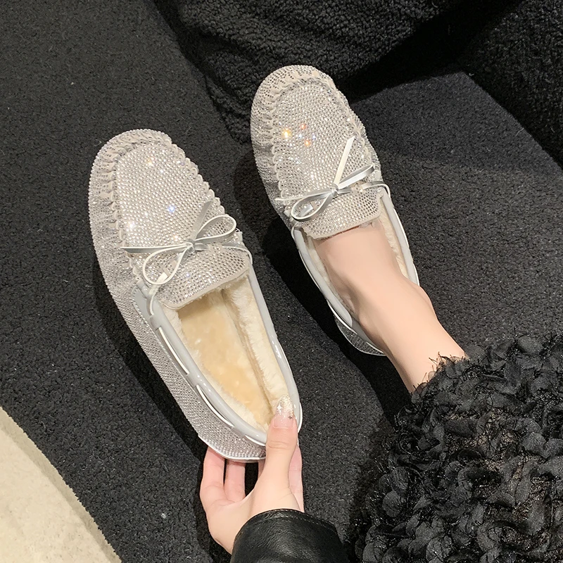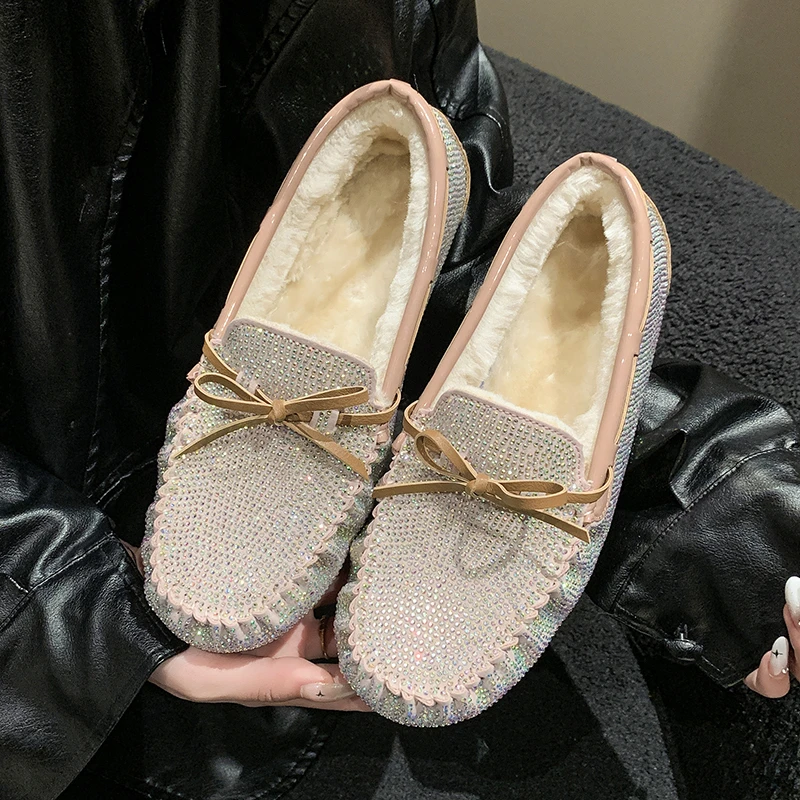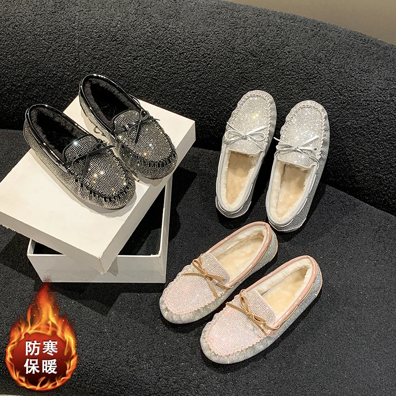 Sangpo RUBBUGG fur integrated beanie shoes women’s winter flat-soled cotton shoes wool snow boots one pedal fluffy shoes