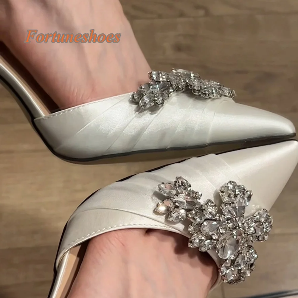 Shallow Pointed Toe Women Pumps Rhinestone Slip On Stiletto High Heel Solid Silk Shoes Fashion Casual 2024 New Arrivals Pumps