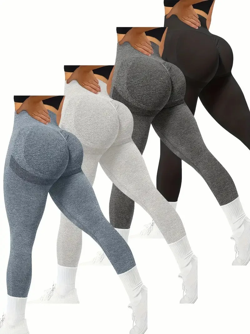 Solid Color Yoga Pants, High Stretch Stretch Running Fitness Sports Leggings, Women’s Activewear Solid Color Seamless Leggings