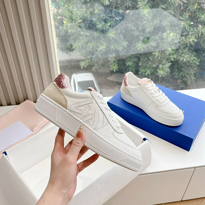 Woman’s Shoes Trend 2024 Leather Cowhide Clash Casual Low White Shoes Women’s Sneakers Luxury Brands Woman Shoes Court Sneakers