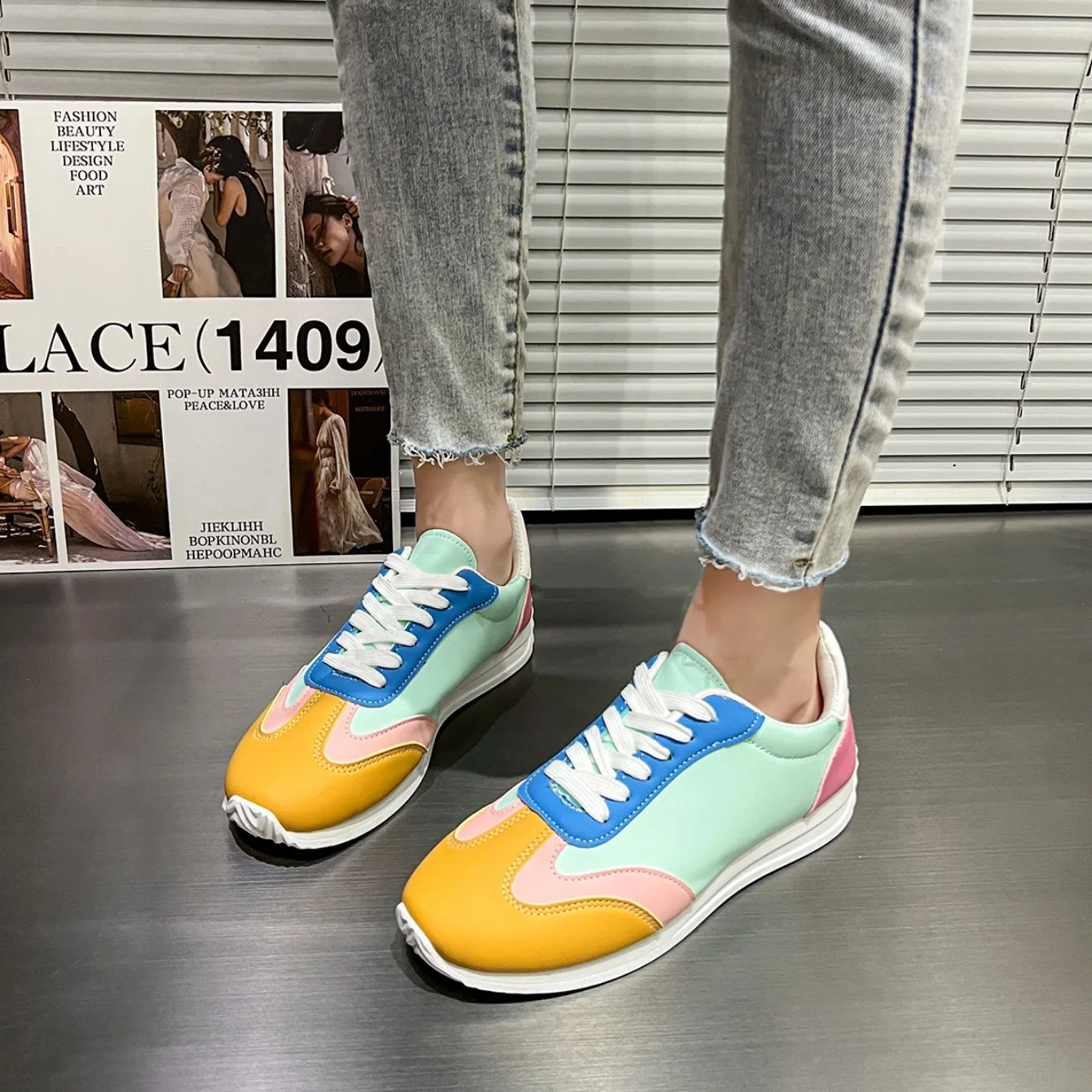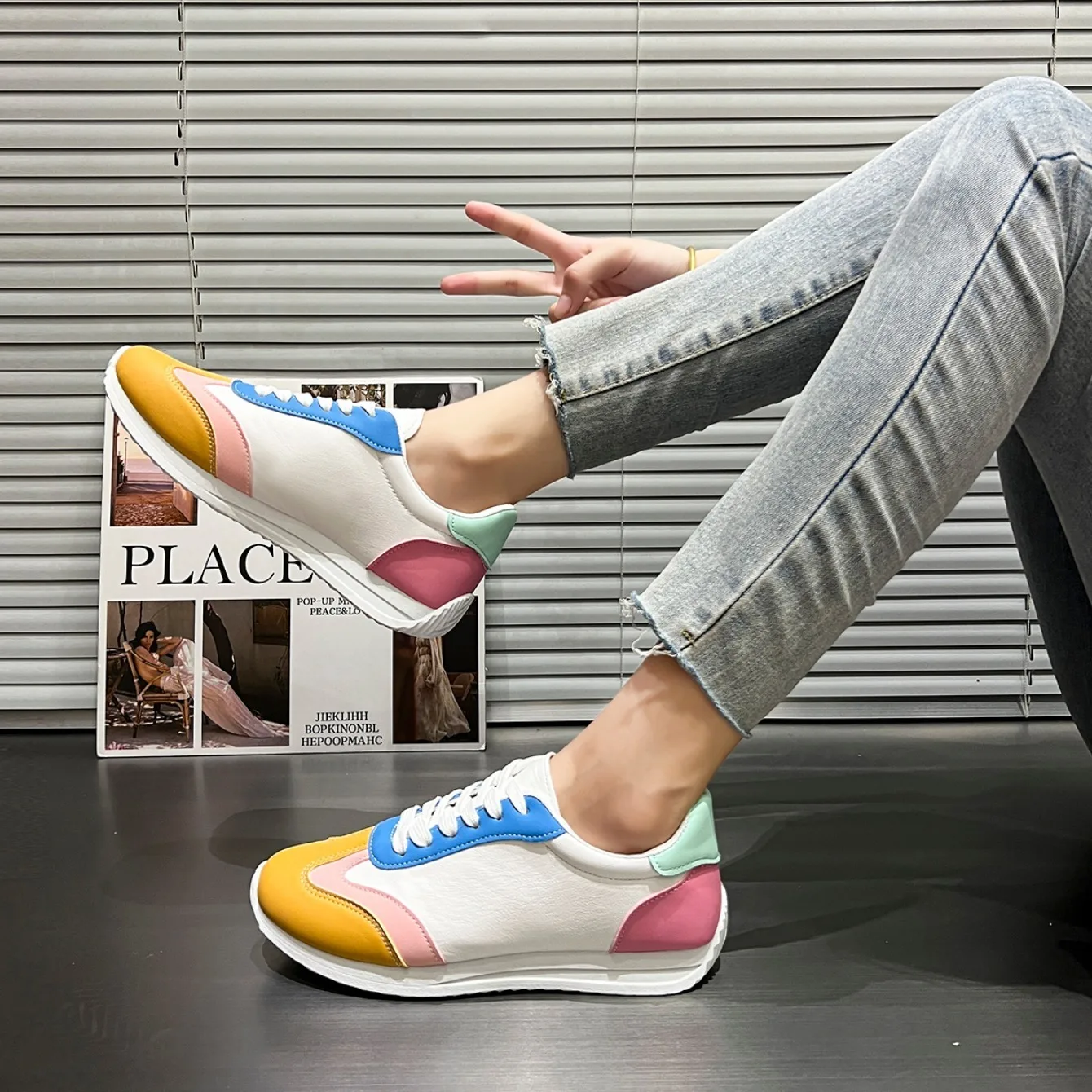 Women Flats Sneakers Fashion Retro Yellow Casual Lace-up Low Cut Sneakers Women Lightweight Breathable Shallow Shoes for Women