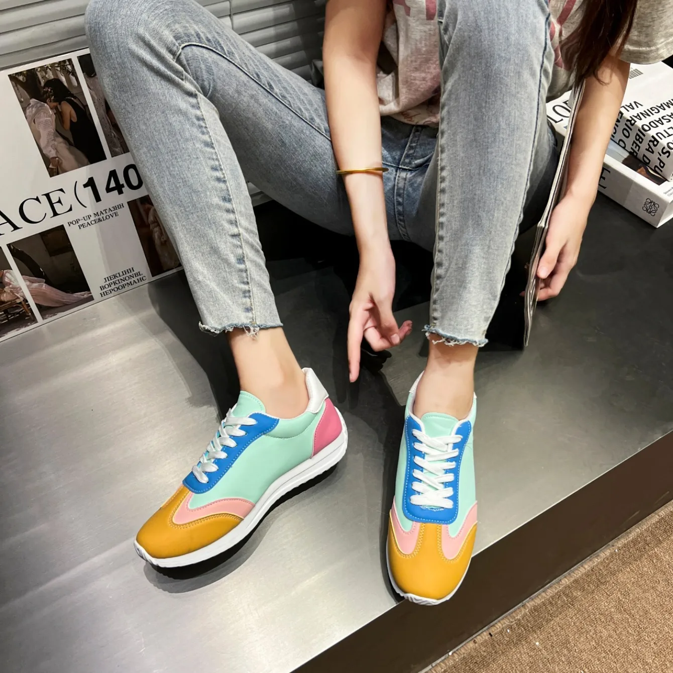 Women Flats Sneakers Fashion Retro Yellow Casual Lace-up Low Cut Sneakers Women Lightweight Breathable Shallow Shoes for Women