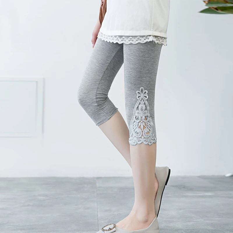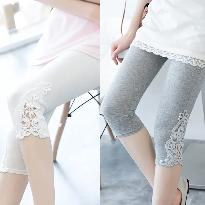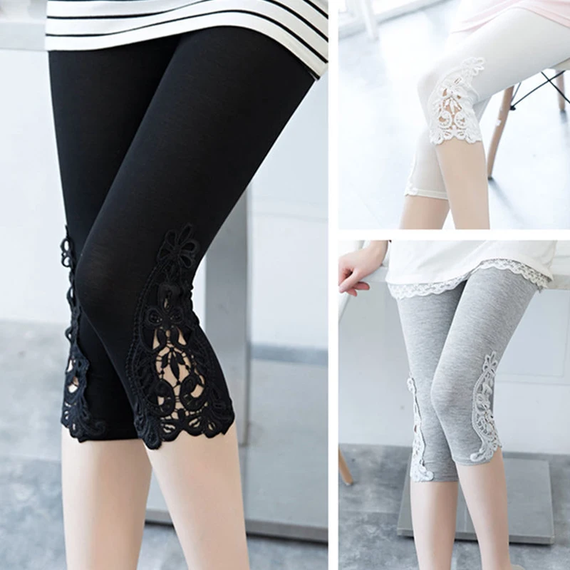 Women Summer Hollow Lace Stretch Leggings Sports Fitness Skinny Pants Crop 3/4 Length Leggings Capris Cropped Modal Pant